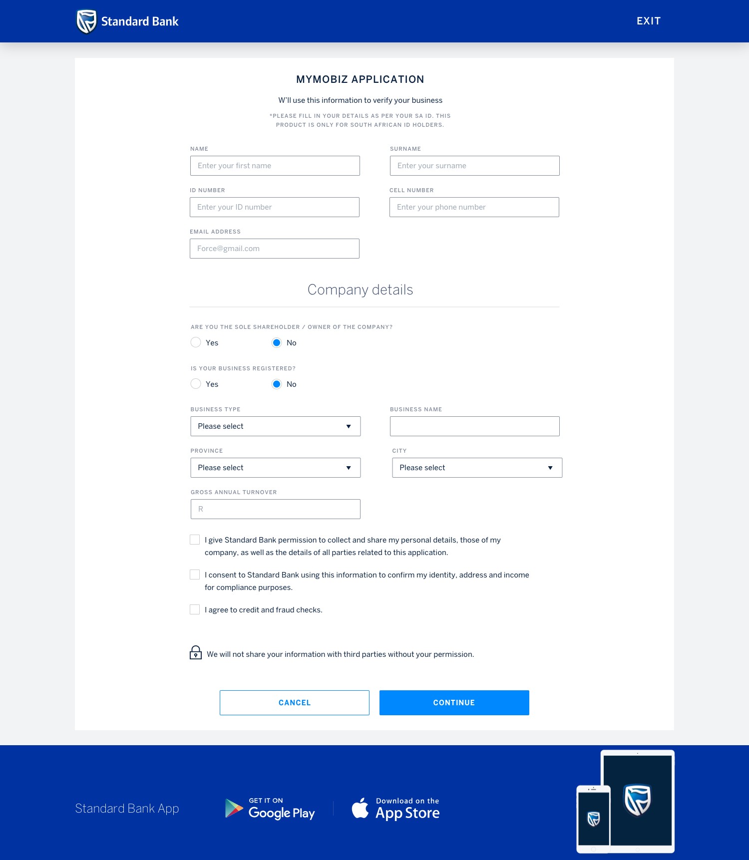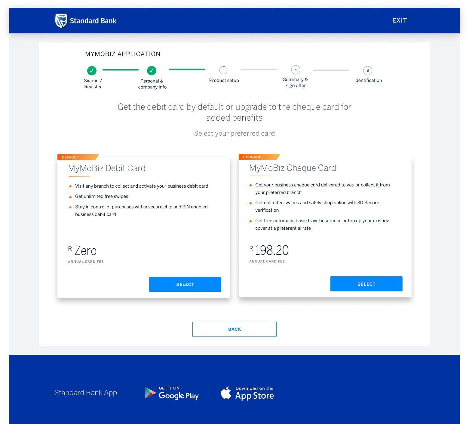 Small business customers with one director wanted to apply for a MyMoBiz account online. The existing process involved the "Call Me Back" functionality on the Standard Bank MyMoBiz page, which took an average of 5 days to open the account and required the submission of multiple documents. This process was inefficient and cumbersome.