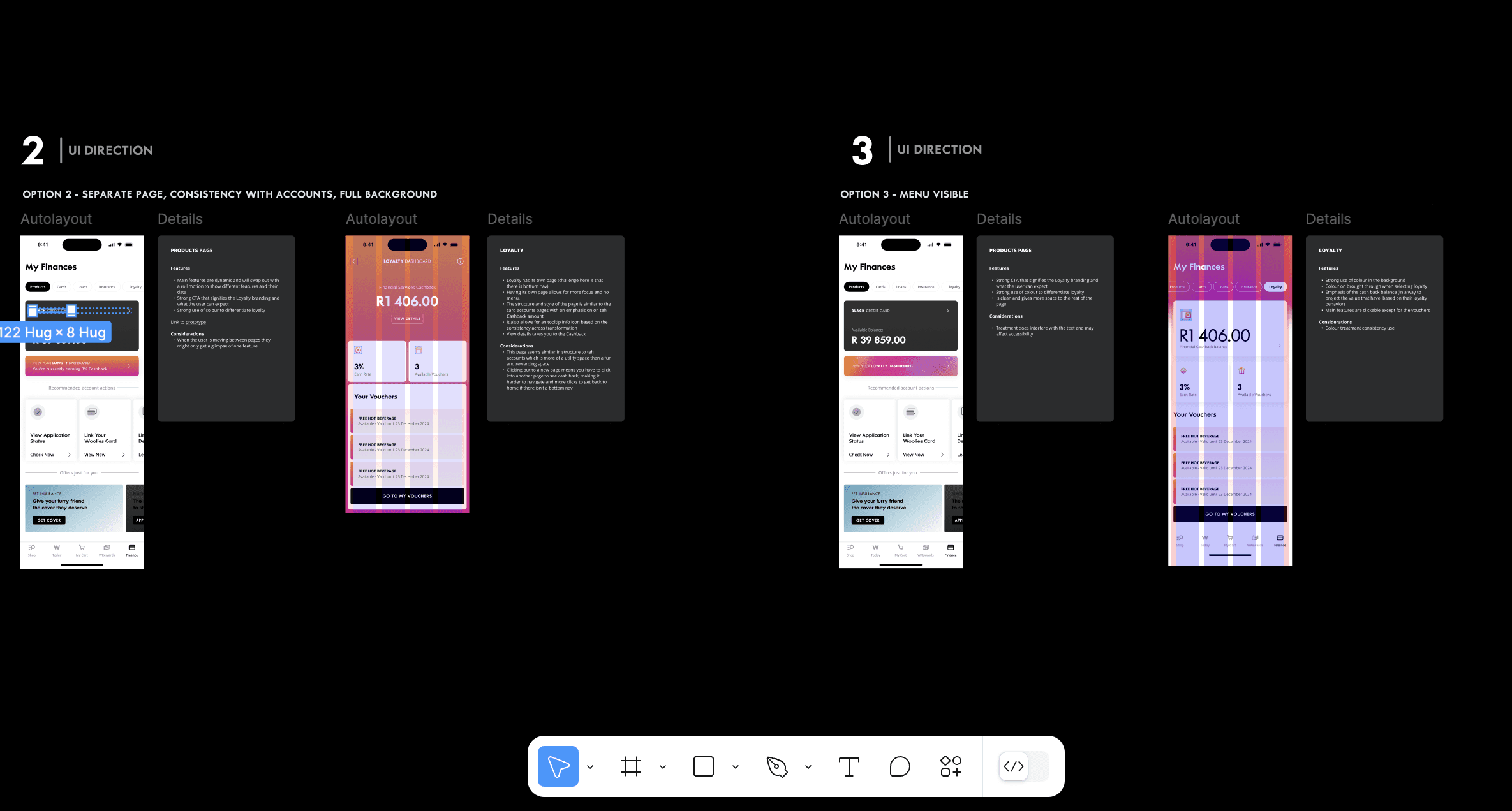 We designed features that directly addressed user needs, such as displaying cashback balances and transaction details. The components were aligned with Woolworths’ existing design system for consistency. We simplified navigation and established a clear feature hierarchy for ease of use. Onboarding tools and informational modals were added to guide new users, ensuring a smooth introduction to the loyalty programme.